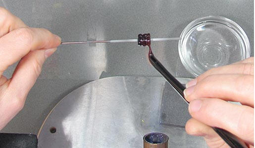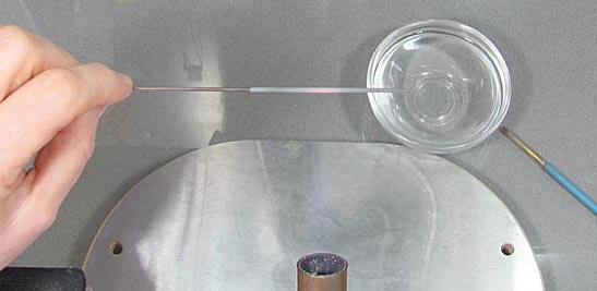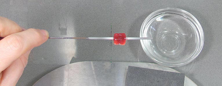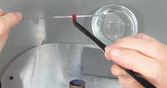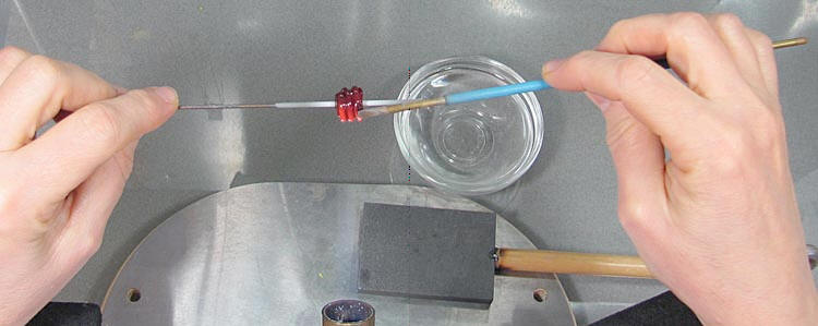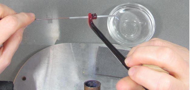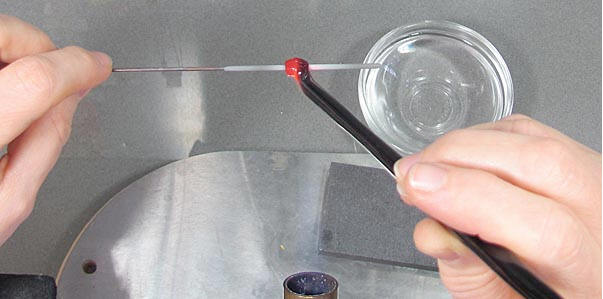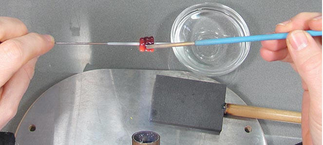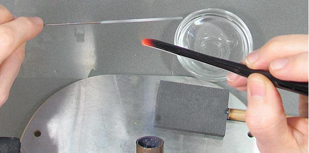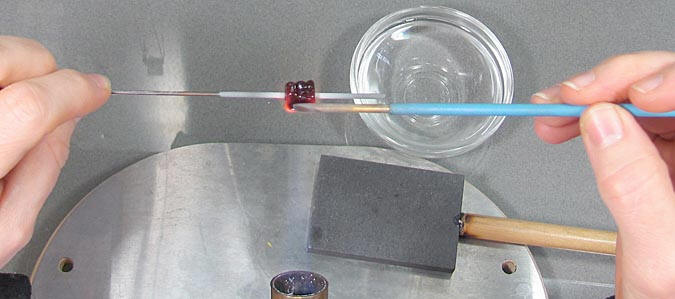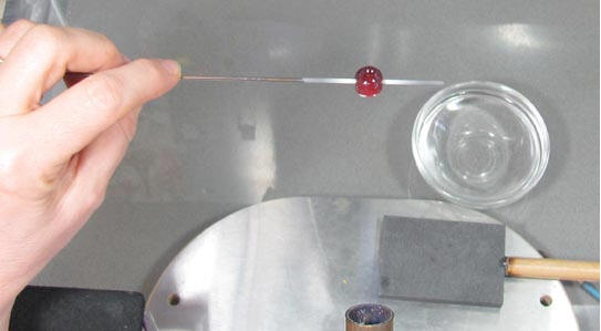 water to shatter off any glass that adhered. Gently flame-polish and shape the