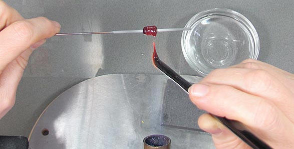 flame, and I can stack colors, adding a layer of the clear frit powder between