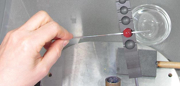 the flame to hook just the surface of the bead’s frit and roll your marver