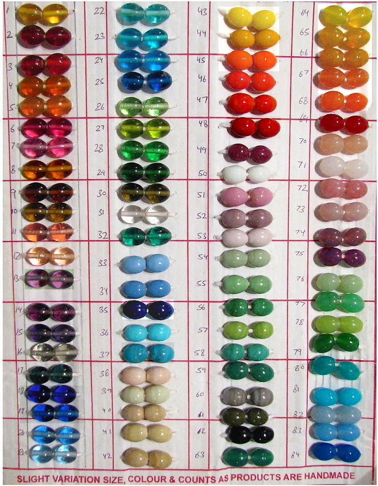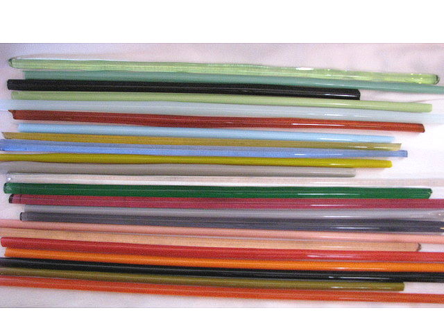 Devardi Glass Rods makes over 180 lampworking colors. Only some of them are shown on the charts and pictures below. To see what glass we have available in stock, and for our lampworking supplies, please click here. All our regular glass rods are $5.99 per pound if you buy whole pounds. They are a bit more for smaller quantities. Glass rods come in a range of sizes from 8-12 inches and from 6-12 mm in width. Each pound will have an assortment of these sizes. We do not grade them by size. Sorry, but this keeps the price low.