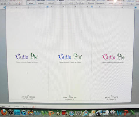 In the picture above on the left you can see the screenof my computer. I created a Table in Word to make this page of Hanging Cards.