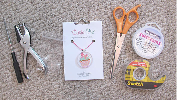 chain in, scissors, Supplemax Monofilament Line to anchor things on the card with, and