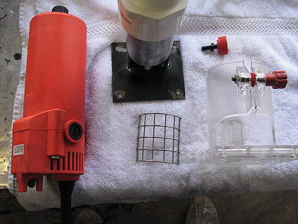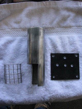 Here are the first parts: 1-1/2 galvanized pipe, 7 inches, 1/8 steel plate to fit your router, finger guard screen, 2 x 2.5 inches. |
