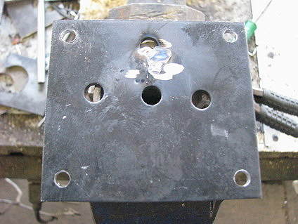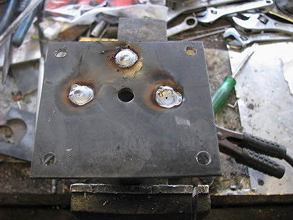 The plate is drilled with a center hole (9/32"), 3 welding holes (9/32') and 4 corner holes (3/16"). Center the pipe, turn it upside down and weld through the welding holes to attach the plate to the pipe.