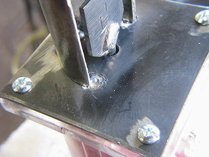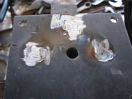 Top view after welding. Notice a weld inside in the middle. I spot weld this first before welding from the bottom just to hold it in place.