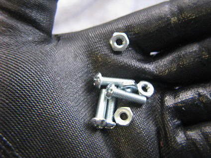 You will need 4 machine screws and nuts, 3/4 inch. I use 10-32 threads.