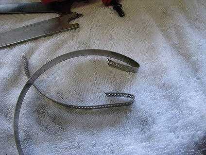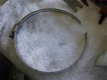 Take a 4 inch hose clamp and cut it as below. Be sure to use a well made clamp. There are some junky light ones on the market that just won't hold up. True Value has some great ones.