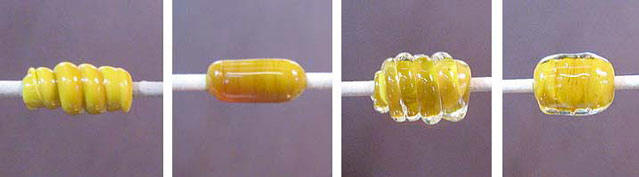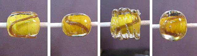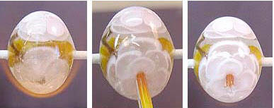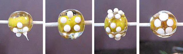 Return the bead to the flame and roll the bead to reheat it just a bit. Repeat this cycle