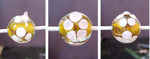 Stamen, gently smooth/melt in the dots. Keep half your bead half way out of the flame